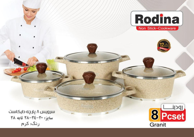 سرویس قابلمه دورو گرانيت رودینا با درب پیرکس با گارانتی