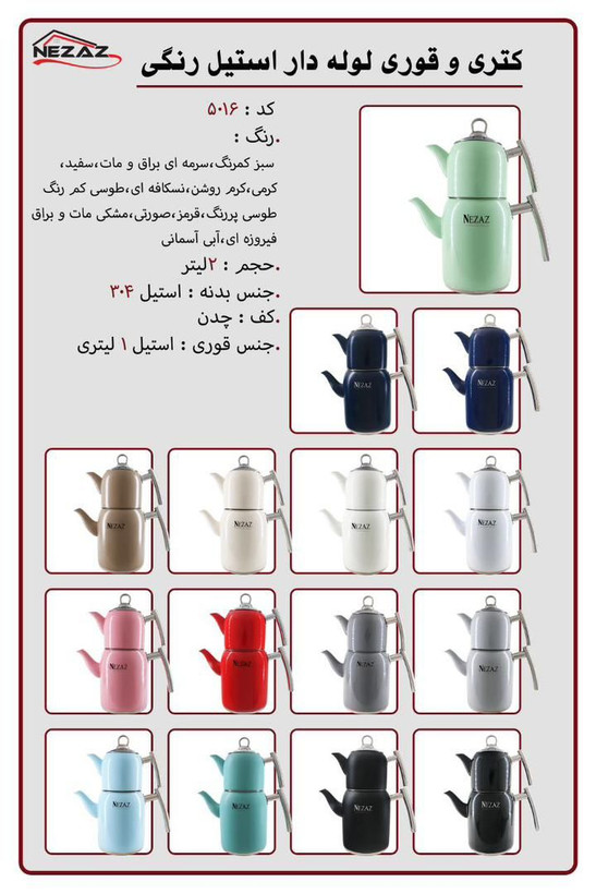 کتری قوری رنگی استیل دارای رنگهای زیبا و متنوع و جنس استیل ضخیم.